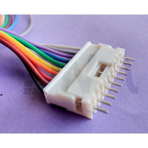 10 Pin Relimate SHS Straight Connector Relimate connector are one of the most widely used connectors it is used extensively in industries and also hobbyist students in their projects to connect power supply, sensors, LCD etc to your main circuit board. It can also be used to connect two boards to each other. A relimate connector normally consist of a male connector which is soldered to the PCB & the female part consists of crimped wires at one end and other end can be bare open or can consist of a female part on other end. This is a high quality SHS type straight 10 pin Relimate connector. It consists of 10 Pin straight Mount male header with 2.54mm spacing 10 pin female wire connector with 30cm wire open at other end Features of 10 Pin Relimate Connector Number of Pins: 10 Type: SHS Straight Pin Spacing (pitch): 0.1inch (2.54mm) Wire Length: 30cm